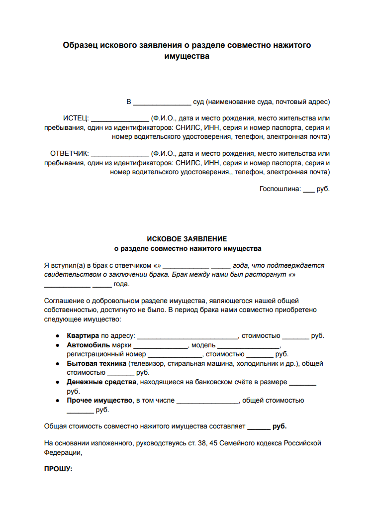Раздел имущества – процесс, требующий юридической грамотности. Если договориться не удалось, правильно составленный иск и полное досье документов помогут вам защитить свои права в суде.
