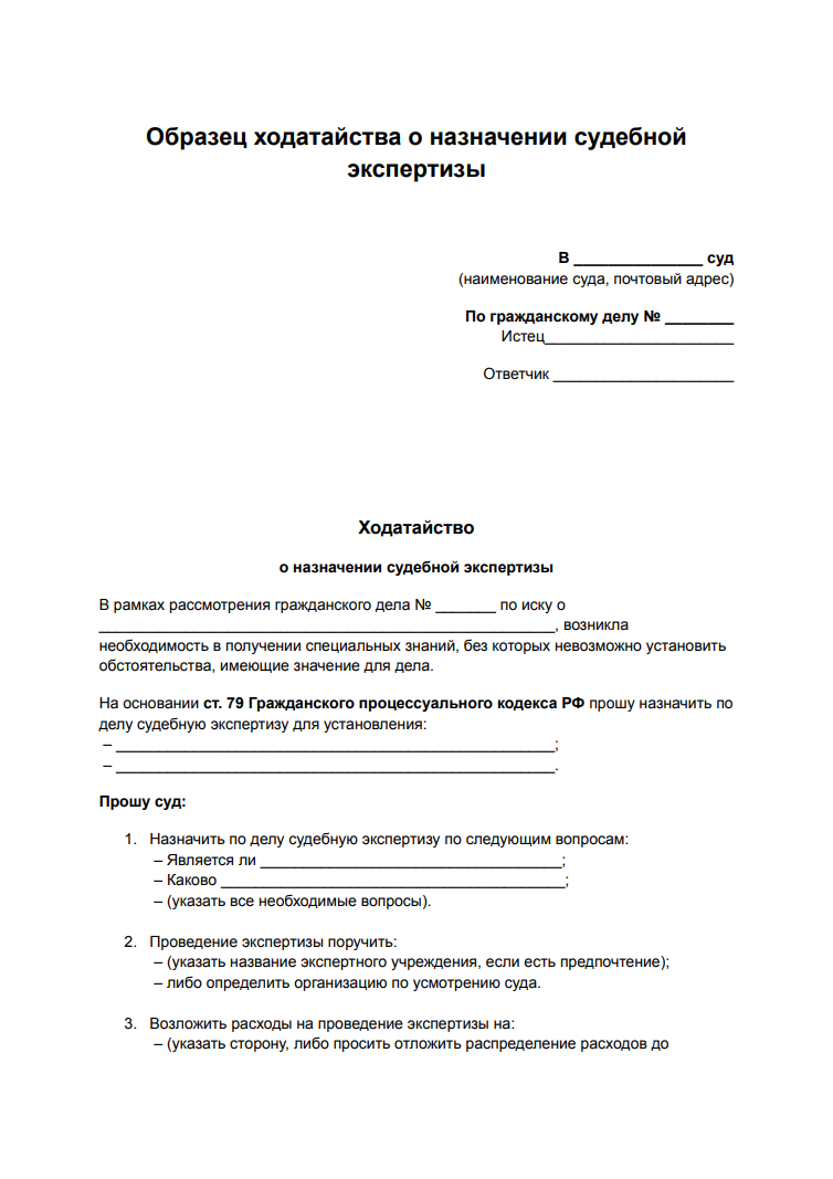Судебная экспертиза может сыграть решающую роль. От качества ходатайства зависит, будет ли она назначена. Скачайте образец и воспользуйтесь консультацией юриста.