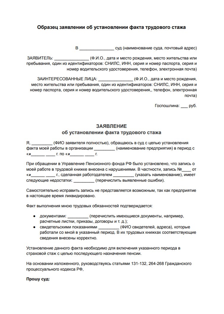Установление факта трудового стажа требуется, если официального подтверждения работы у заявителя нет, а доказать это необходимо для оформления пенсии, получения социальных выплат или иных льгот. Иск подается в следующих случаях: